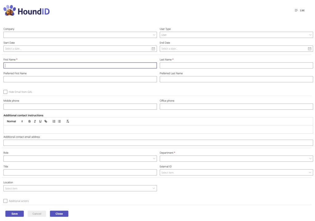 You can select user or contractor. If you select contractor the Start and End Date will become mandatory.